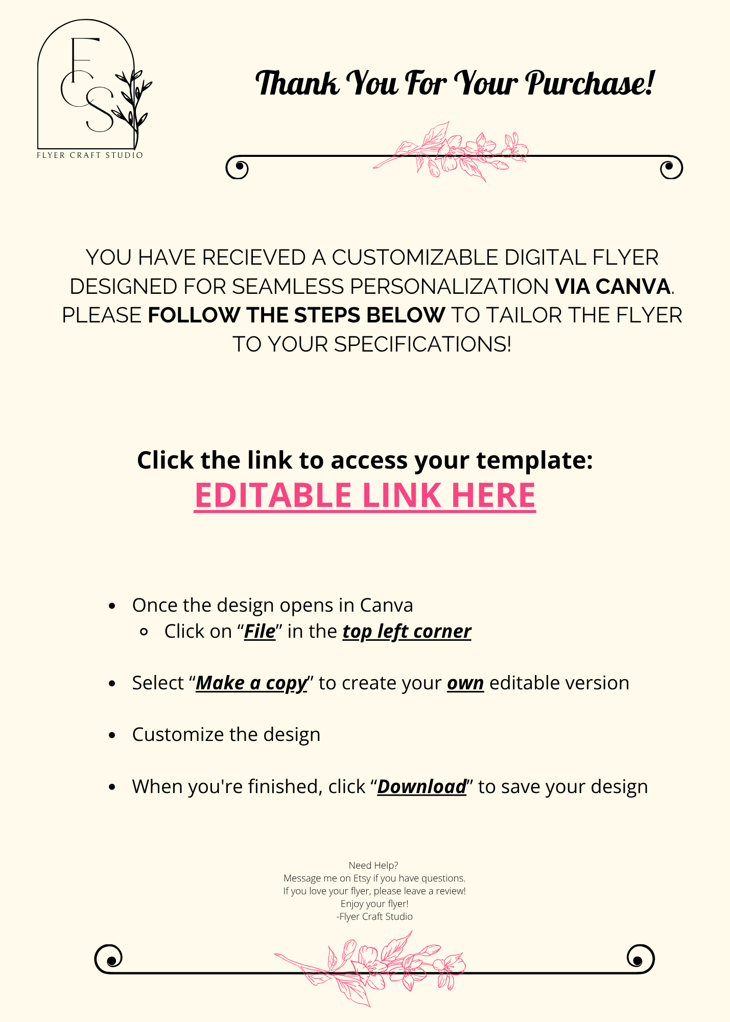 A branded "thank you for your purchase" insert featuring d direct link for easy access & continued engagment