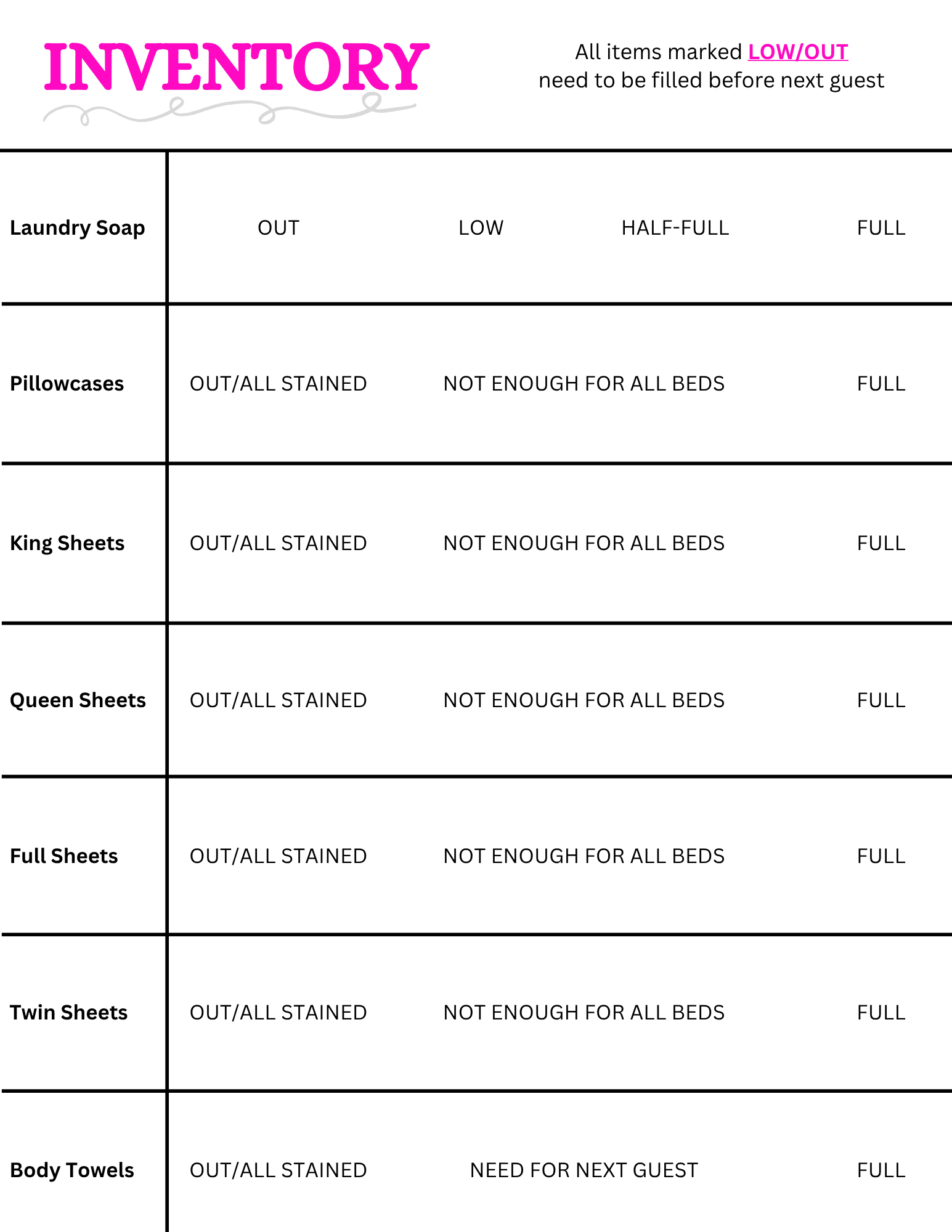 A clean & functional inventory sheet designed to help track items in an organized & effective way